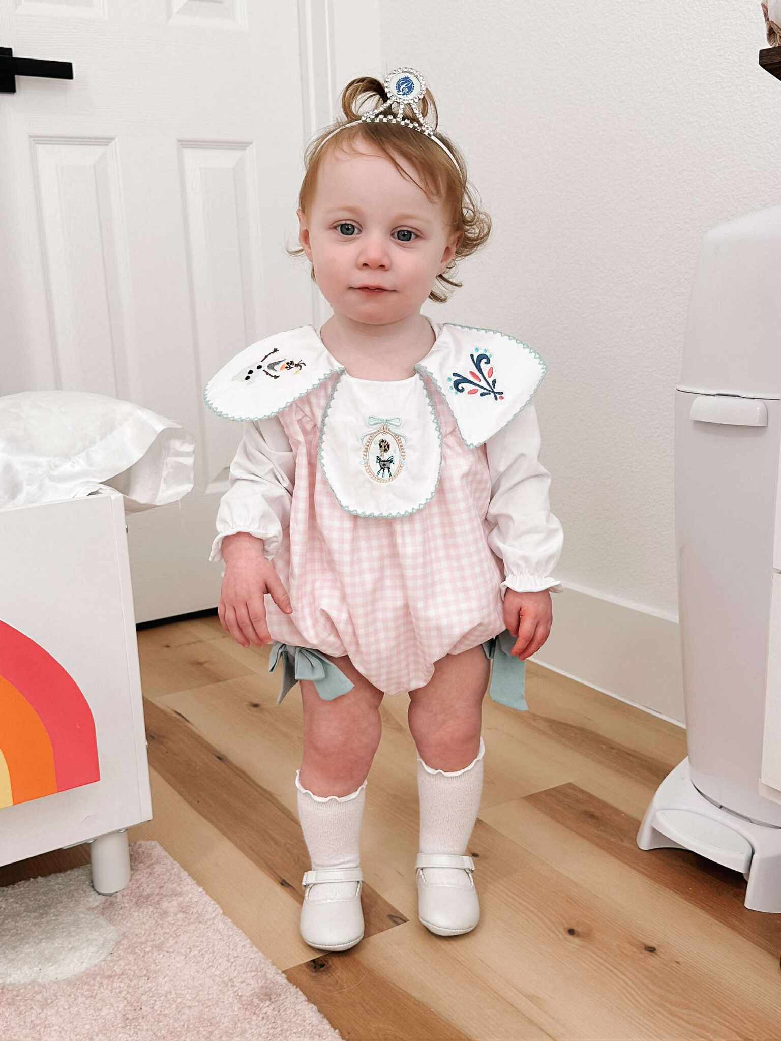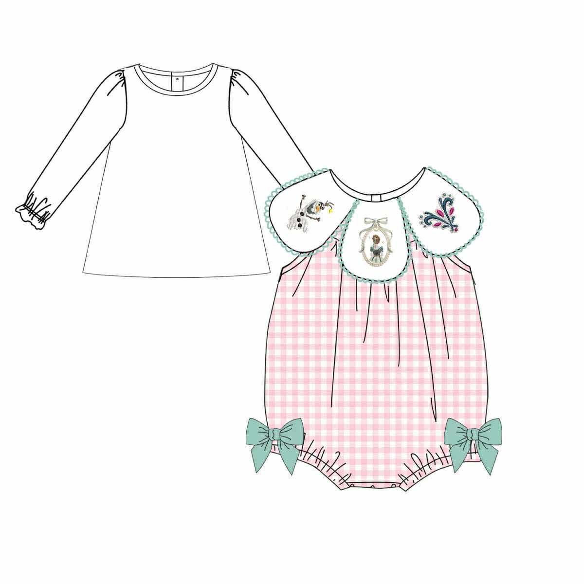2-piece set: embroidered woven bubble and white long sleeve knit undershirt.