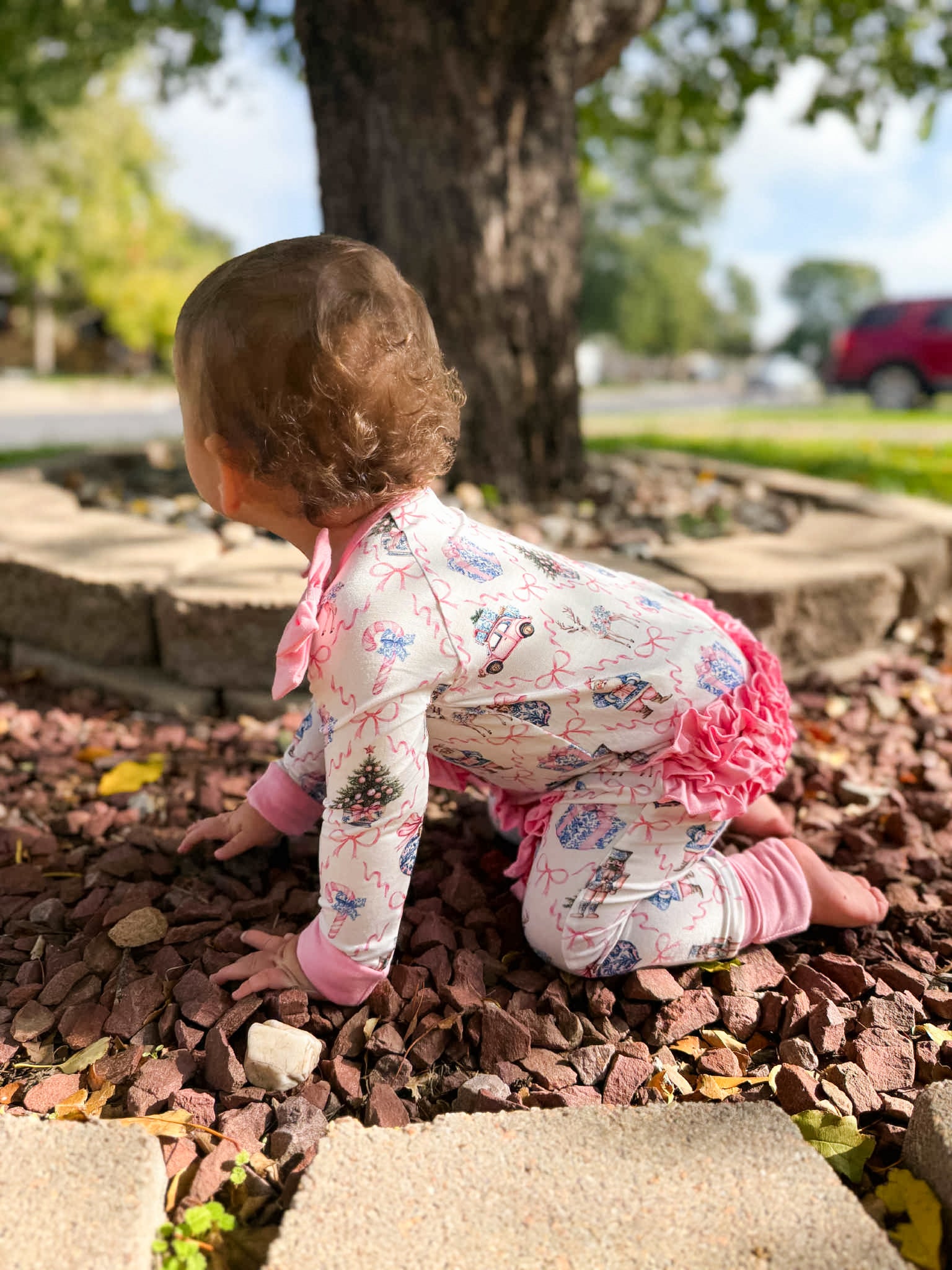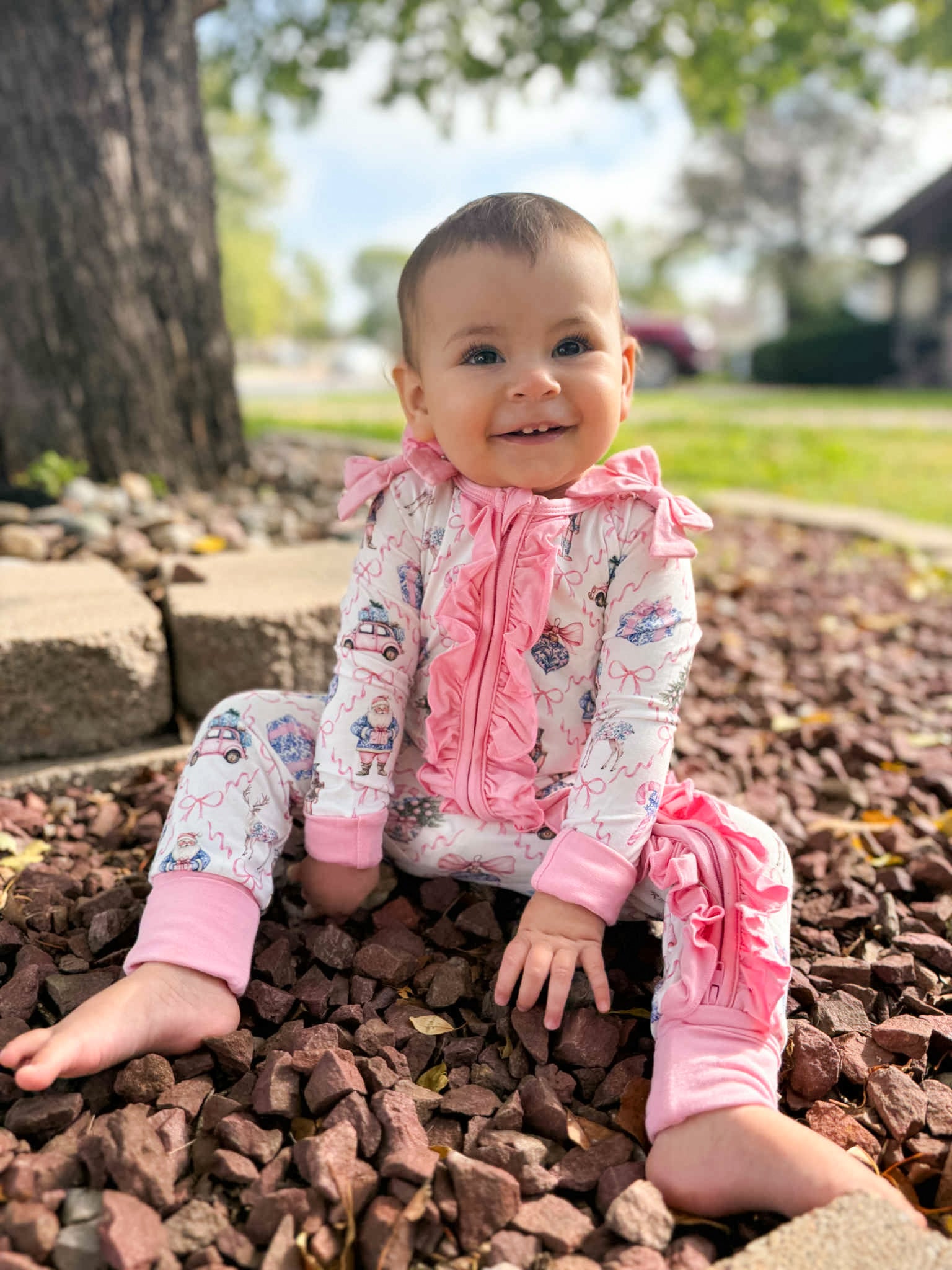RTS- Pink Christmas- Bow Ruffles Zippy