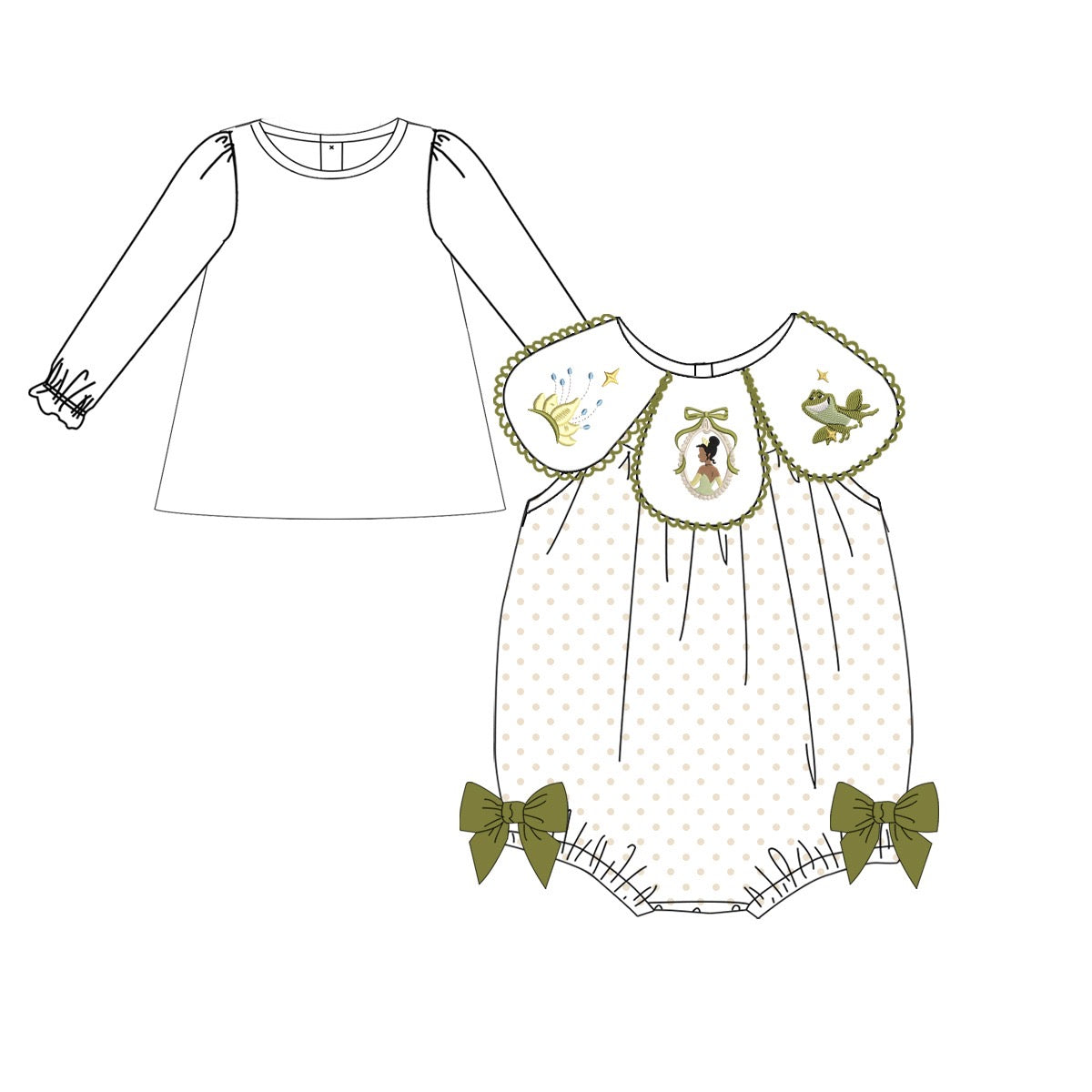 2-piece set: embroidered woven bubble and white long sleeve knit undershirt.