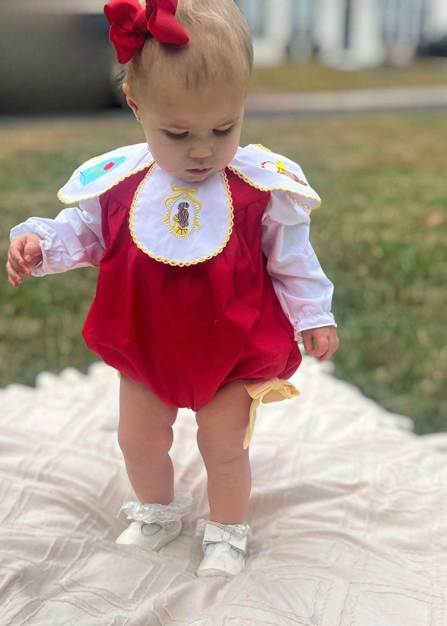 2-piece set: embroidered woven bubble and white long sleeve knit undershirt.